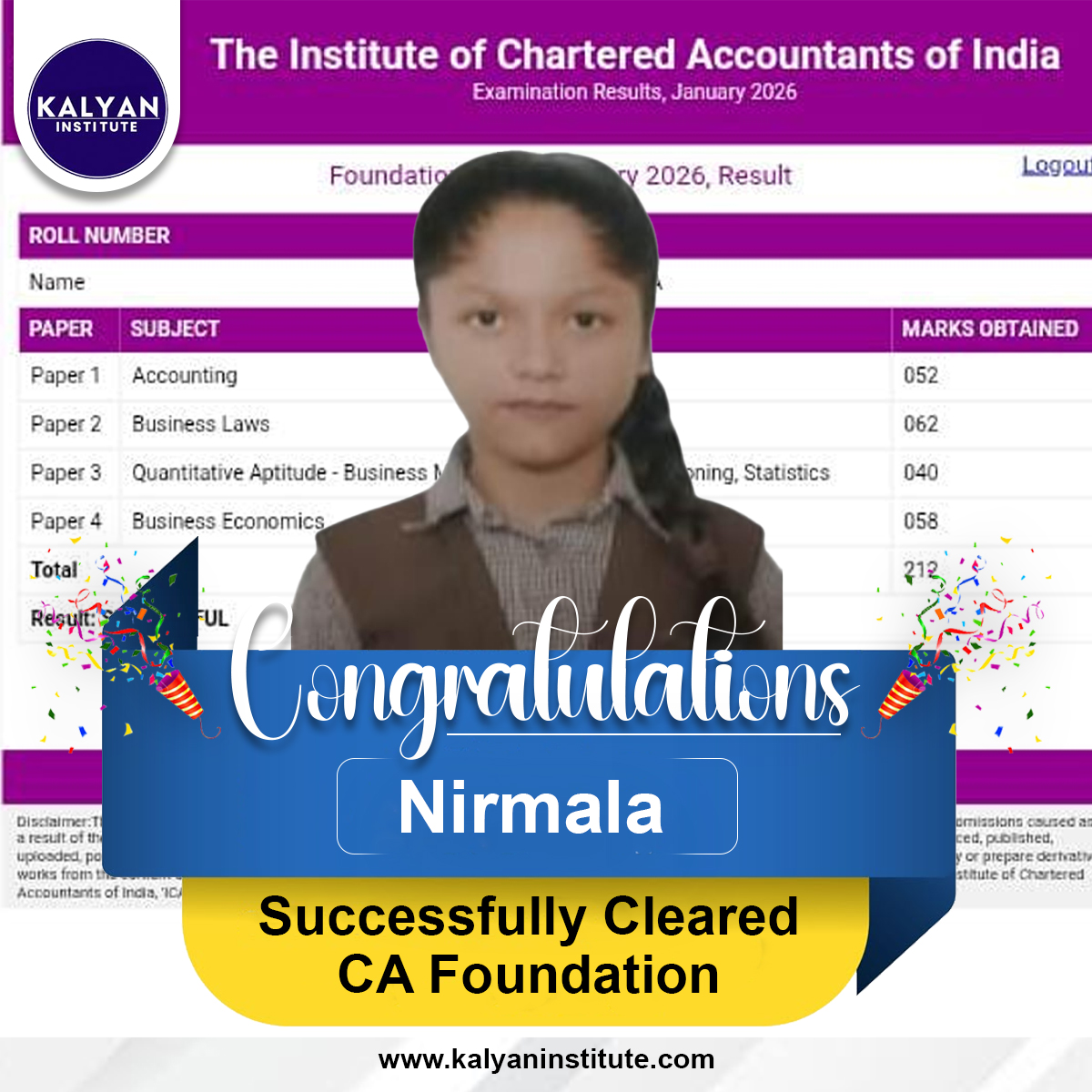 Celebrating the students who successfully cleared CA Foundation with Kalyan Institute.
